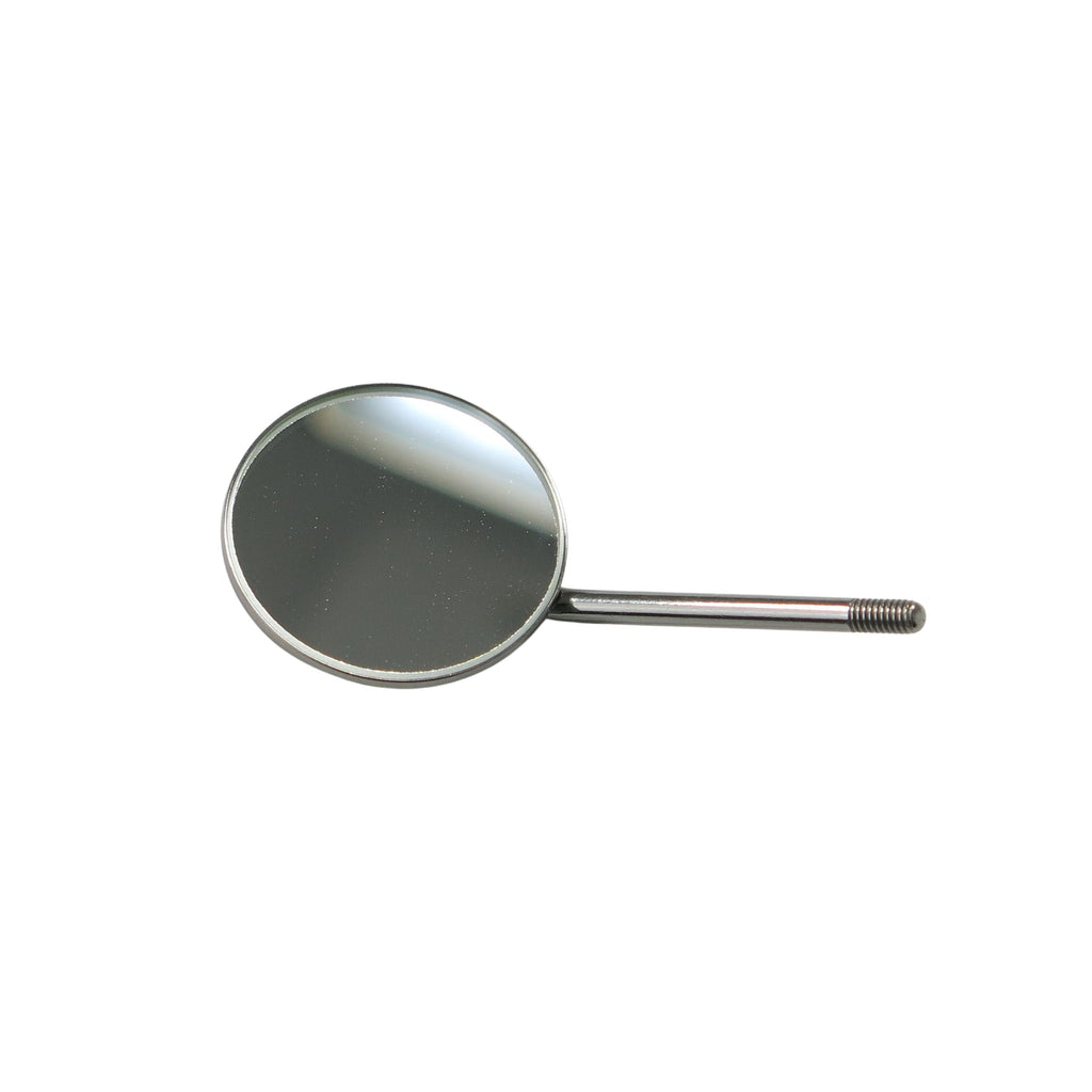 Simple Stem Mirror #5, heads only, 12 pcs per box. Handles are available and can be be purchased separately. Made with quality Stainless Steel casing. A silicone seal between mirror and casing prevents water from entering during autoclave of instrument. No 5 mirror has 24 mm diameter mirror. Plane Surface mirrors.