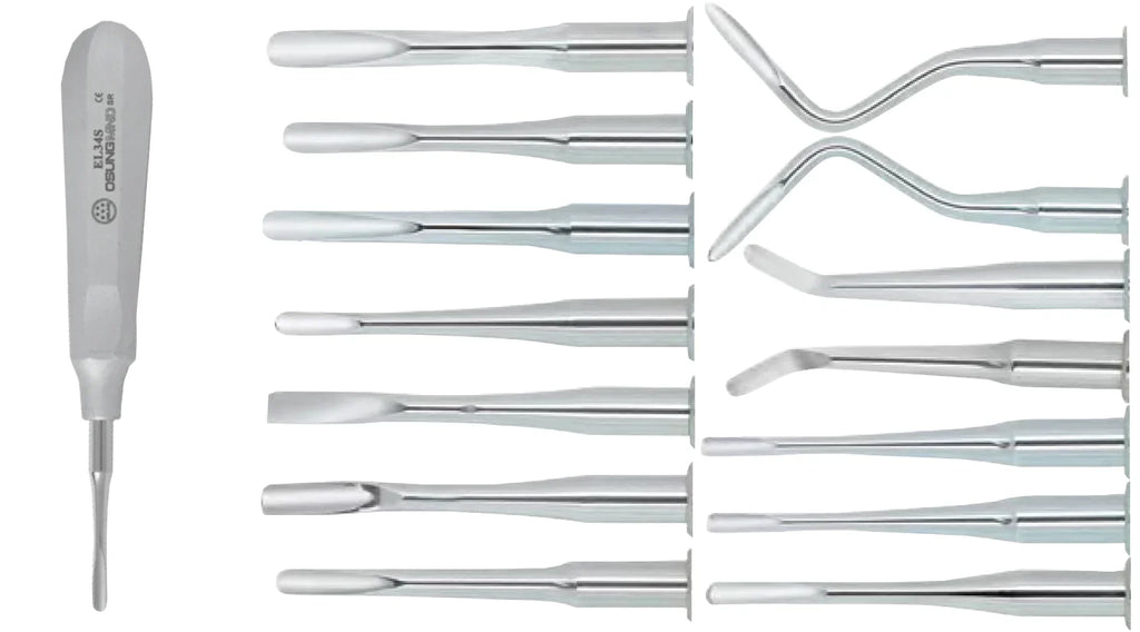 Each elevator is designed to offer precise control and ease of use, catering to a range of extraction scenarios. Elevate your practice with this comprehensive kit, providing you with the tools you need for efficient and effective dental procedures.