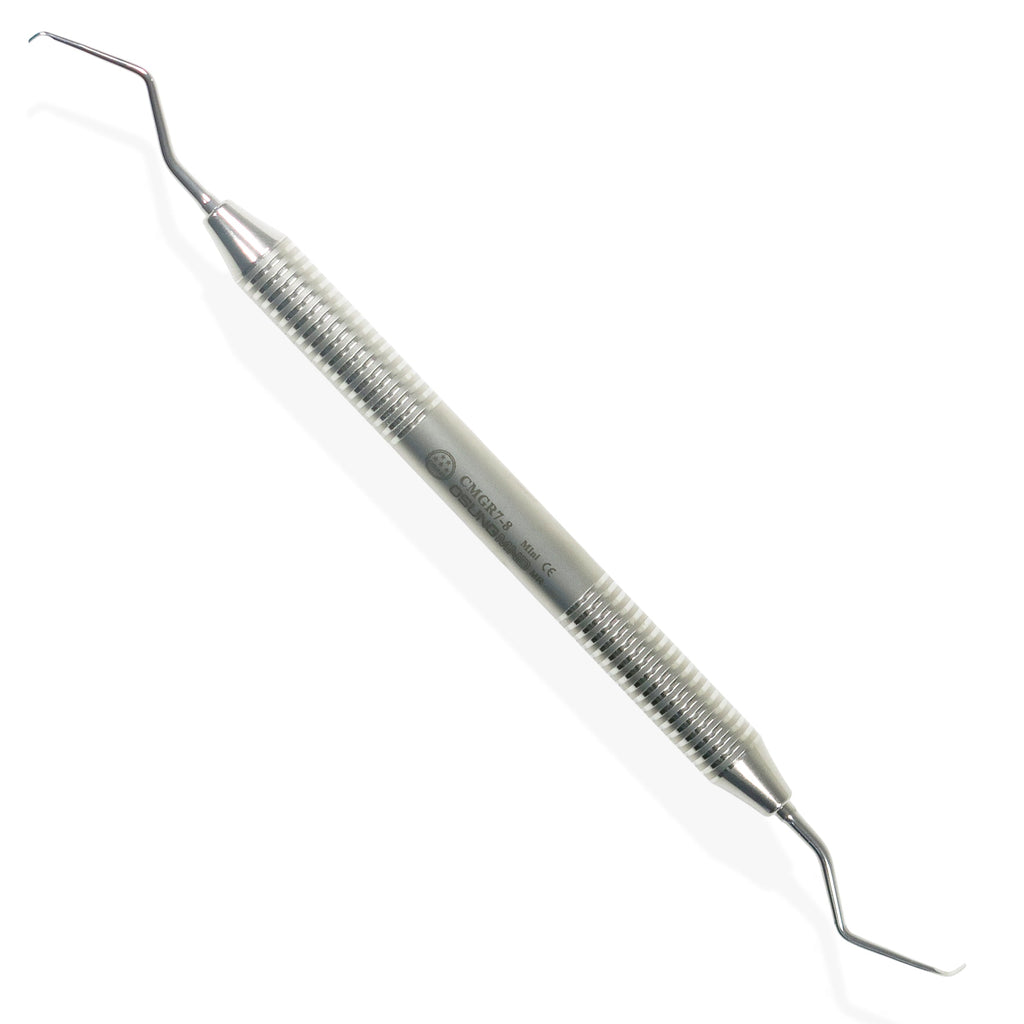 • The blade is a little thinner than that of the standard gracey curette to enable easy gingival insertion and reduce tissue damage.