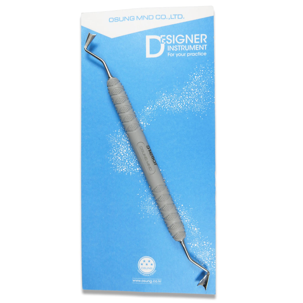 Osung 3GRM2 Gingival Retractor is precisely made to guard gingival tissue during cavity preparations or resin filling. Medical tool is fabricated with proficient plastic grip to deliver excellent handling and tactile feel to the fingers. Dental apparatus is effectively designed to act on canine and premolar teeth in upper and lower jaw. Medical equipment is built with high grade metal that offers enhanced tool life and maximized instrument investment. Dental tool is competently crafted to provide optimum performance. Restorative equipment features dual working end. Both the tips of the instrument measure 5.8 mm. Medical instrument is produced from top quality light weight material that reduces hand and wrist tiredness.
