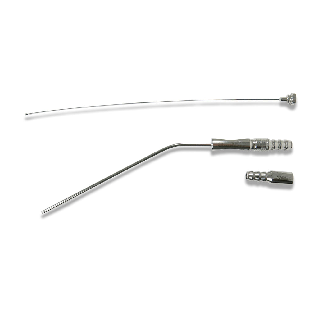 These Suction Tips are all made with medical grade stainless steel and are used to evacuate fluids from the surgical site. Frazier Suction Tips have a relief hole on the thumb rest that allows the practitioner to regulate the intensity of the suction at the tip. Cleaning Stylet, extension hose and hose adapter are included in the kit. Three type of kits are available with varying inner diameters of the suction tip.