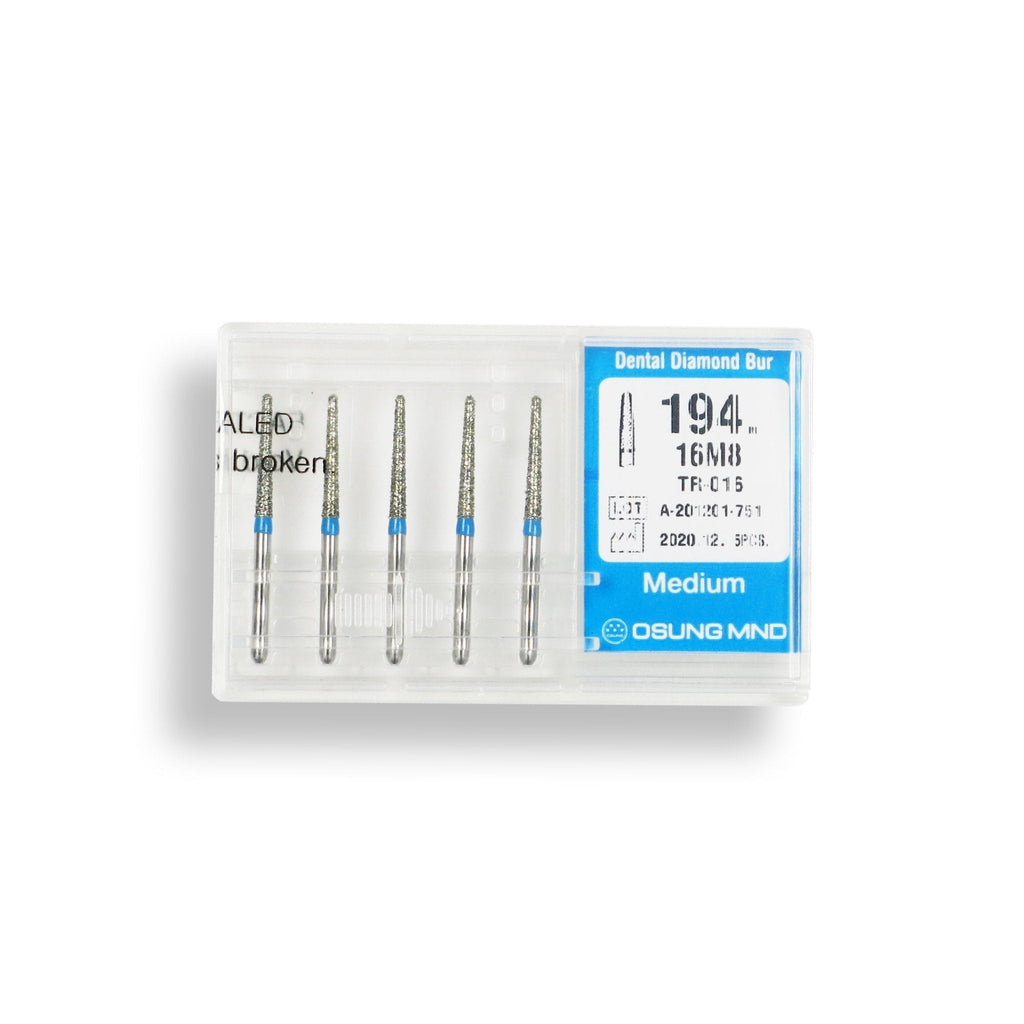 194.16M8, CONICAL, DOME END, 1.6 MM DIA, MEDIUM GRIT DIAMOND BUR, 5 PER PACK