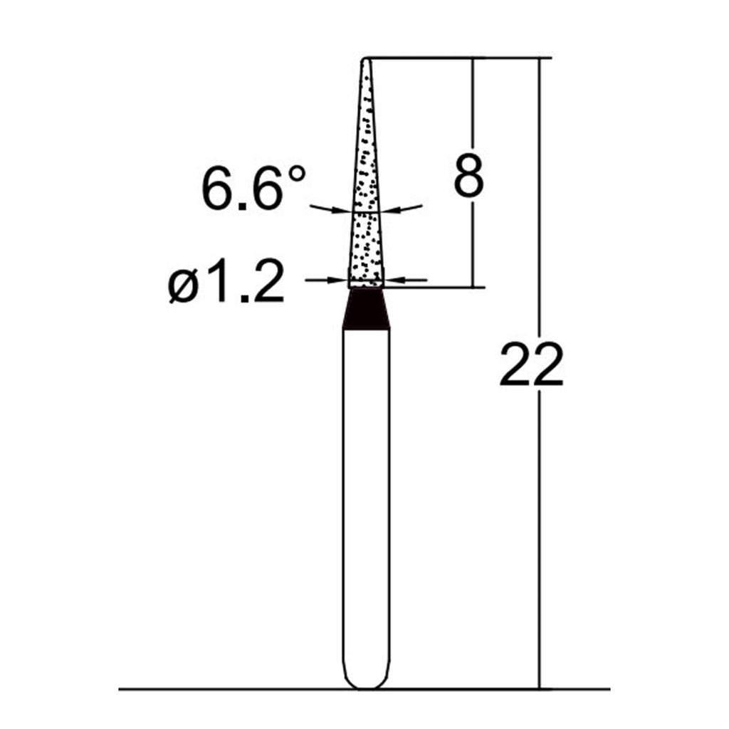 164.12EC2, CONICAL POINTED, SLENDER, 1.2 MM DIA, EXTRA COARSE GRIT DIAMOND BUR, 5 PER PACK