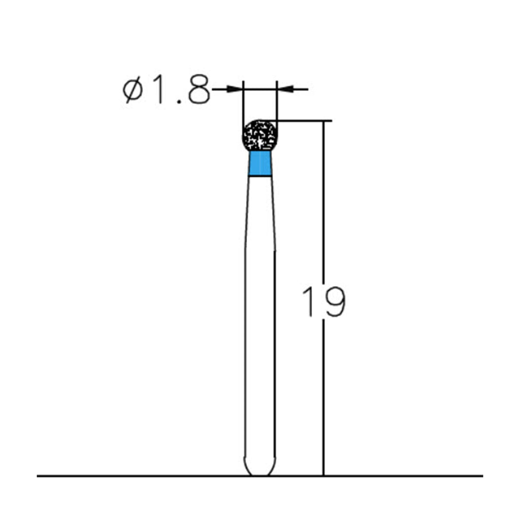 Spherical 1.8 mm Dia. Medium Grit Diamond Bur 5 per pack. 001.18M1