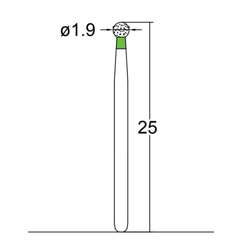 Spherical 1.9 mm Dia. Coarse Grit Diamond Bur 5 per pack. 001.19C1