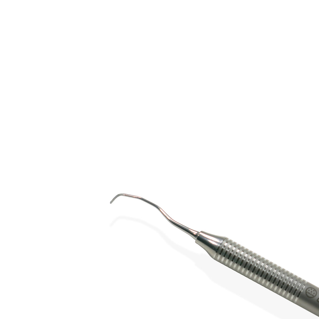 Gracey Curettes have a blade that is laterally offset by 70 degrees relative to the shank and has a lower cutting edge and an upper non-cutting edge. Only one side of the blade can be used.