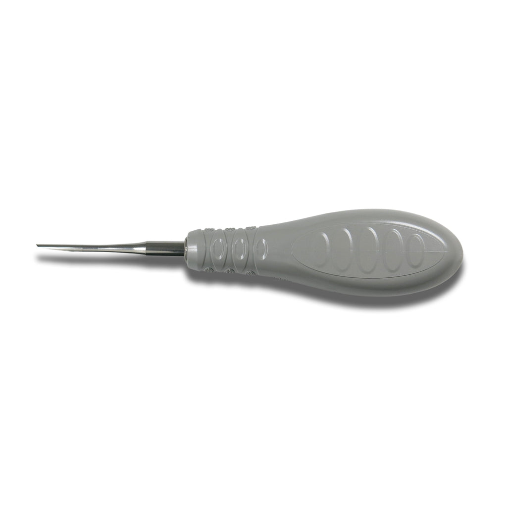 The Osung elevator 3EL304W features 3.1mm tip width for deeply seated roots. The elevators have been designed to make extractions atraumatic during dental surgical procedures. The result is less tissue damage, and this helps in promoting expedited healing and minimum complications. The elevator is used by cutting and rocking, rather lifting like any traditional elevator.