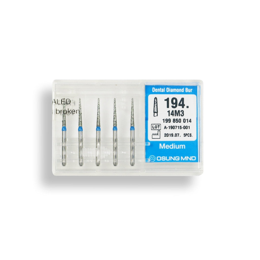 194.14M3, CONICAL, DOME END, 1.4 MM DIA, MEDIUM GRIT DIAMOND BUR, 5 PER PACK