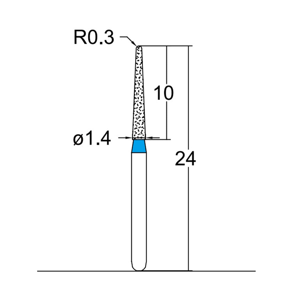 Conical, Dome End 1.4 mm Dia. Medium Grit Diamond Bur 5 per pack. 194.14M3