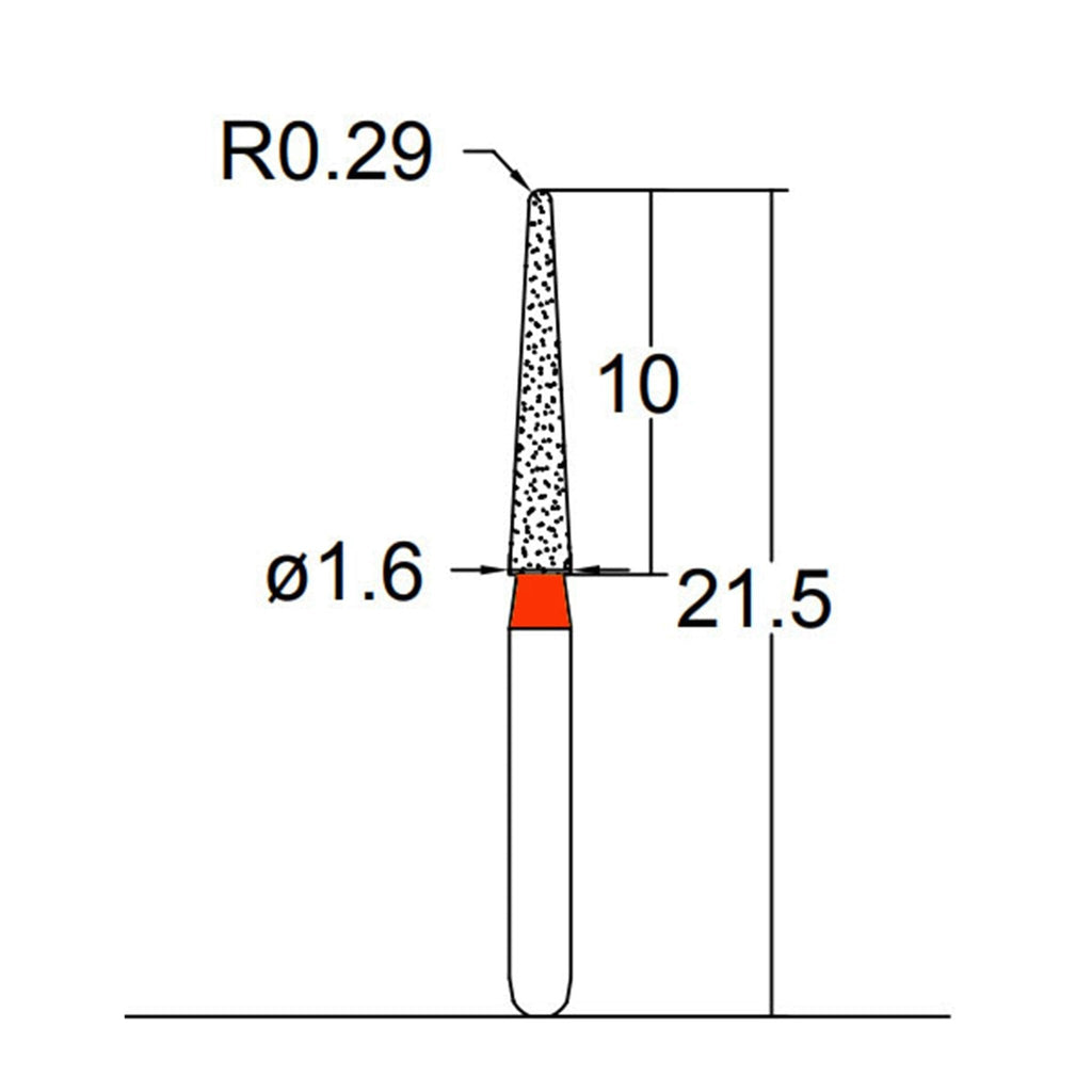 194.16F5, CONICAL, DOME END, 1.6 MM DIA, FINE GRIT DIAMOND BUR, 5 PER PACK