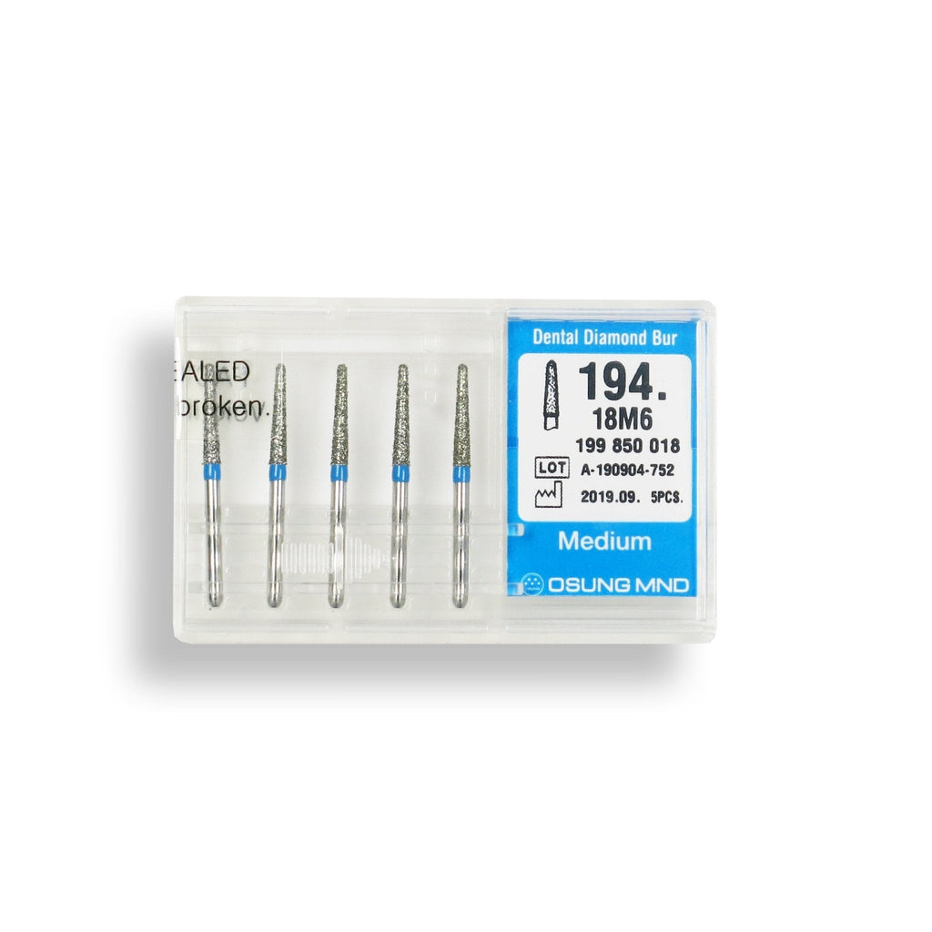 194.18M6, CONICAL, DOME END, 1.8 MM DIA, MEDIUM GRIT DIAMOND BUR, 5 PER PACK