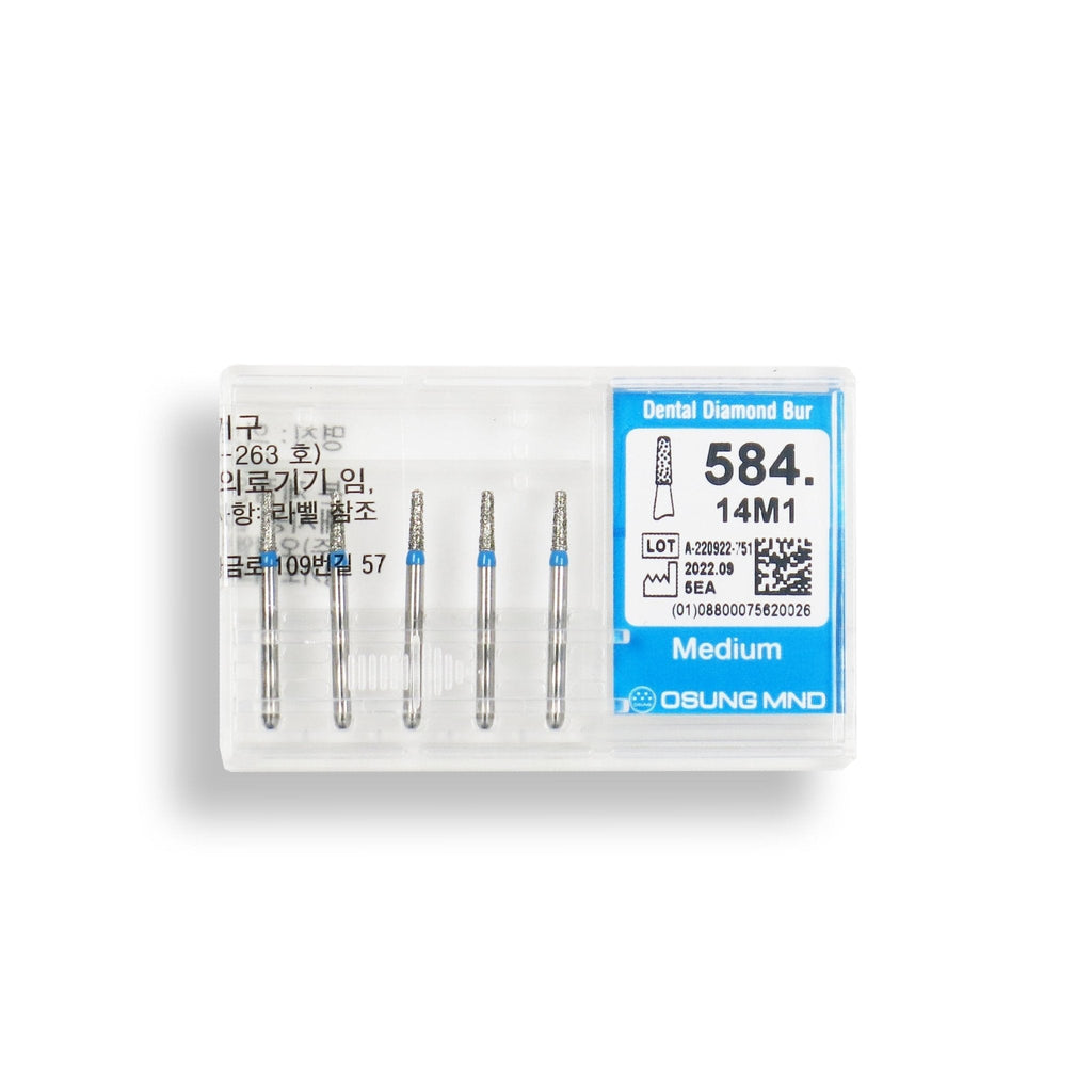 584.14M1, CONICAL,ROUND EDGE, 1.4 MM DIA, MEDIUM GRIT DIAMOND BUR, 5 PER PACK