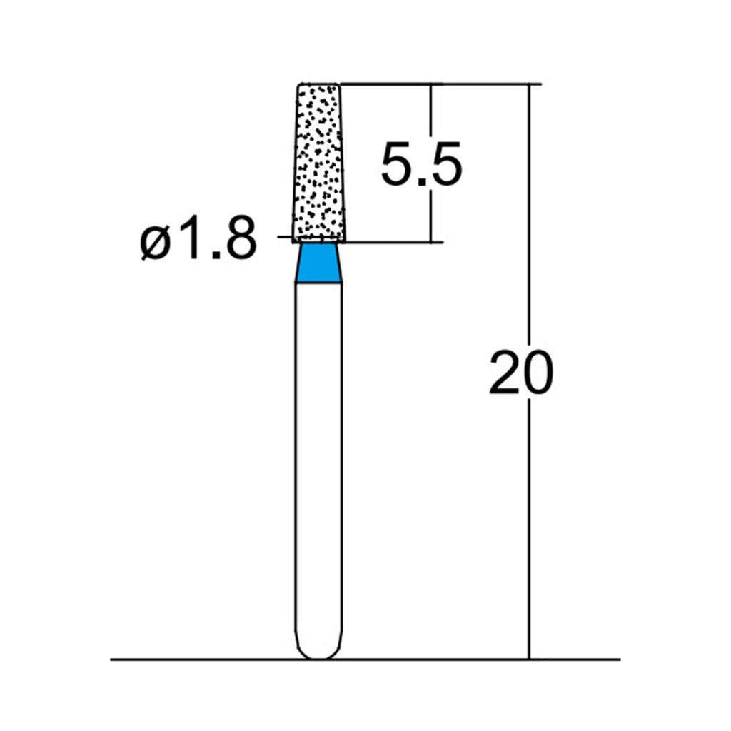 Conical, Round Edge 1.8 mm Dia. Medium Grit Diamond Bur 5 per pack. 584.18M3