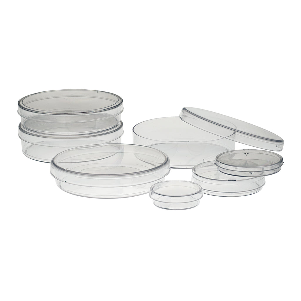 Sterile and made of polystyrene. Accommodates deeper fills for longer culture periods. Used for fungal cultures, plant propagation. Has three venting ribs into the underside of the lid to prevent condensation build-up.